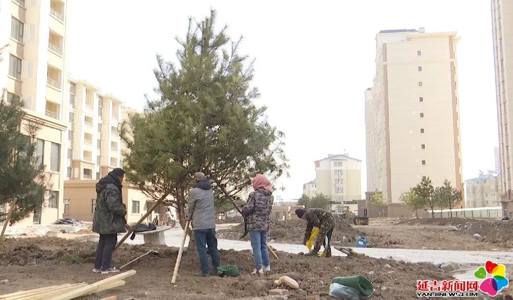 연길시제9중학교 동쪽의 단층집개조 B24 대상 현장에서 시공일군들이 한창 나무를 심는 등 작업을 질서있게 전개하고 있다.