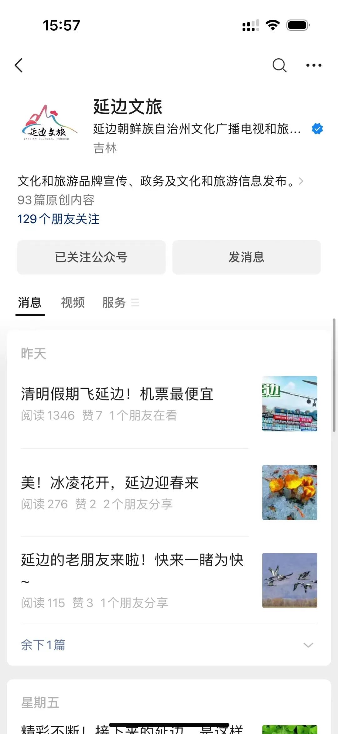 ‘연변문려’ 위챗구독계정은 4년 련속 성급 뉴미디어 관련 상을 수여받고 성 문화관광정무 공식계정 영향력 월간순위에서 5차례나 3위권에 진입했는바 연변문화관광 뉴미디어 활약도를 보여주고 디지틸화 마케팅 주진지를 구축했으며 연변문환관광도시 브랜드를 일층 보급했다.
