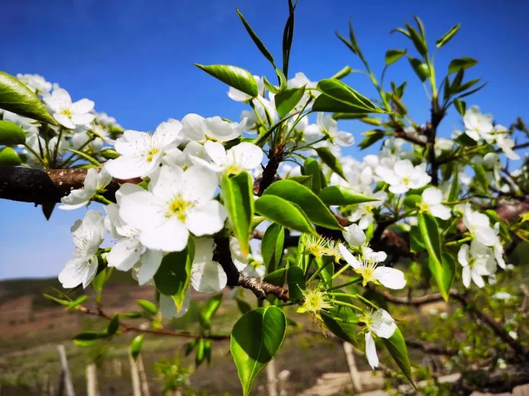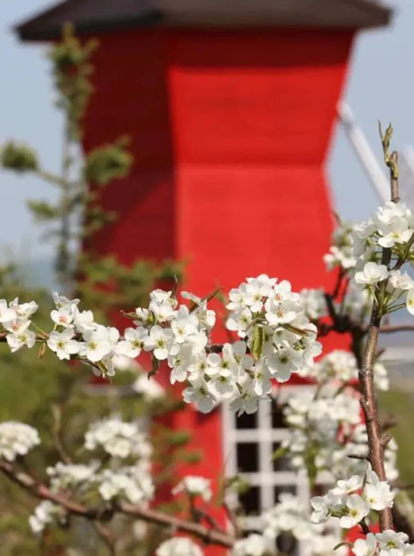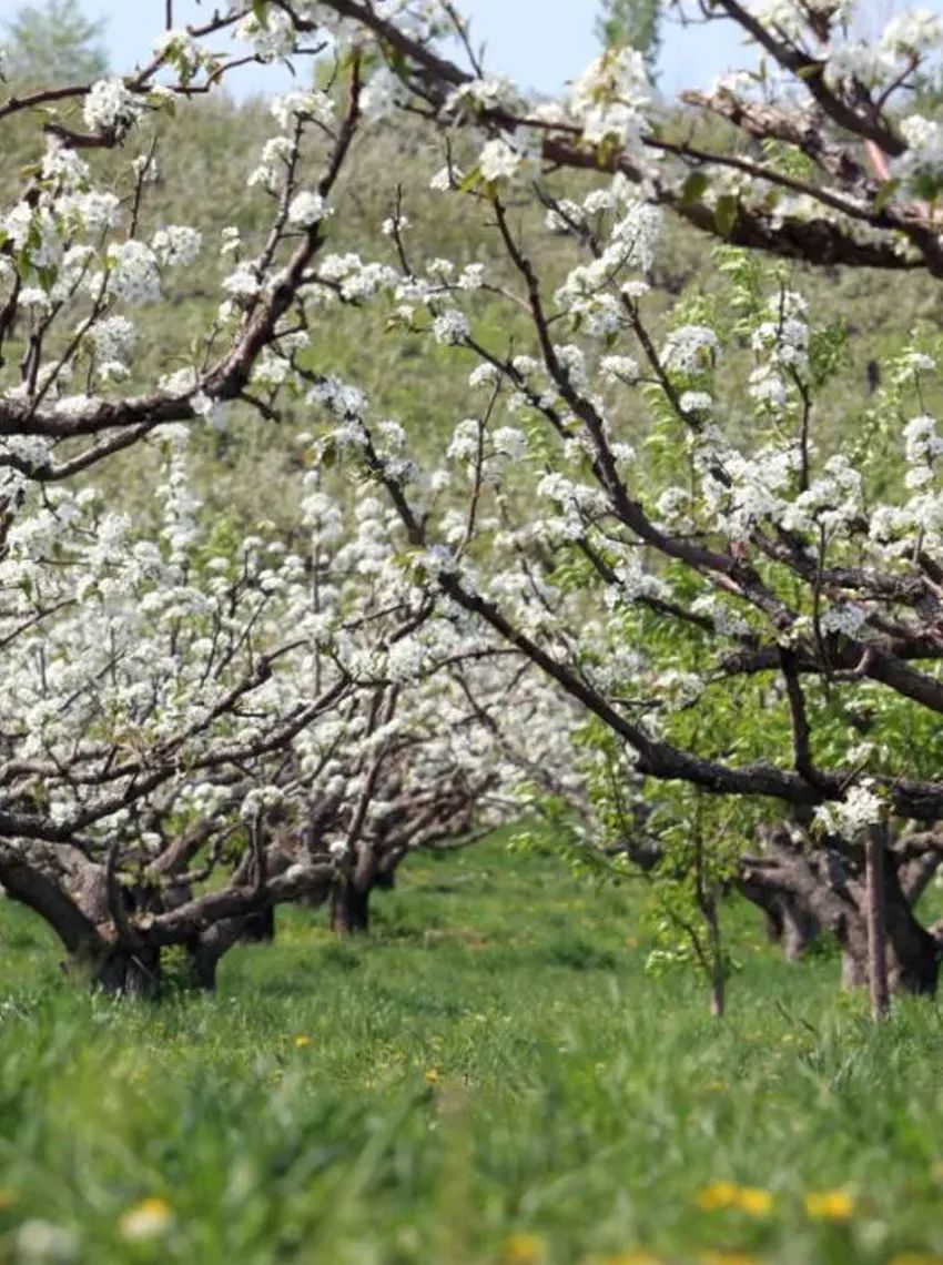 사과배꽃이 만개하면 만무과원은 옥처럼 흰빛갈이 산비탈을 뒤덮습니다. 봄바람이 불면서 꽃봉오리를 머금고 싹을 틔우면 향기가 그지없습니다.