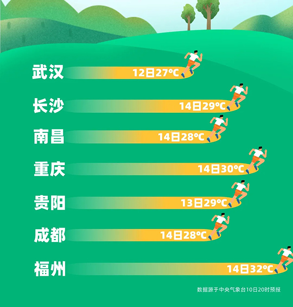 또한 앞으로 남방의 야간 최저기온은 꾸준히 상승할 것이며 중경, 남창, 복주 등 지역은 13일 이후 최저기온이 20℃에 도달하거나 초과하여 여름에 접어들게 된다.