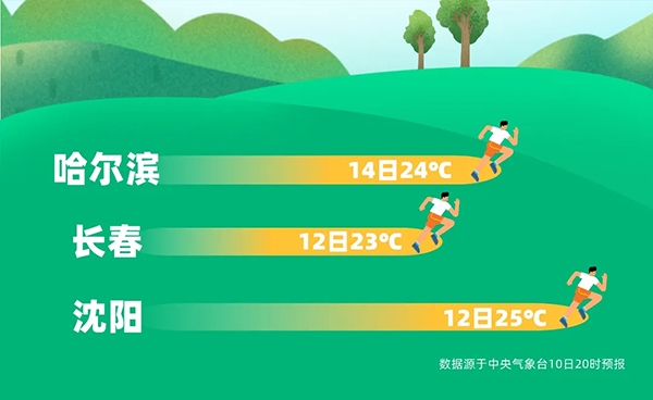 우선 등장한 곳은 동북지역으로 12일부터 기온이 계속 상승한다. 이번주말까지 많은 지역은 올해 이래 최고치를 갱신할 것으로 보이고 최고 기온 20℃선이 흑룡강 북부로 계속 접근하게 된다.