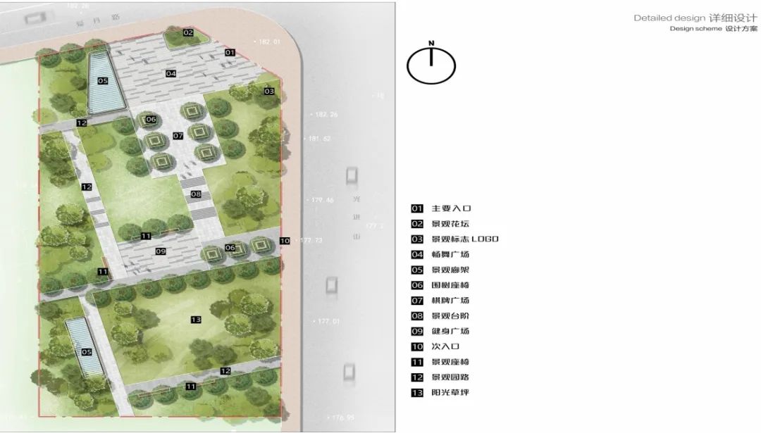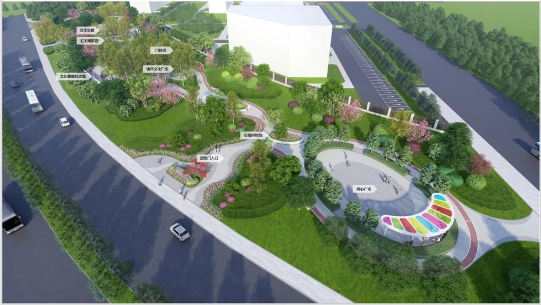 주변 주택단지 환경과 결부하고 현대적인 구도방식을 운용하여 합리적인 휴식공간을 만들고 나무 복도를 배치하여 원림예술의 감화력을 증강시키며 정원 길에 각종 나무들을 재배해 인문과 자연이 서로 조화를 이루는 쾌적하고 편안한 유원광장을 만들 전망이다.