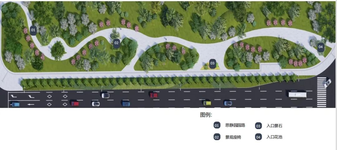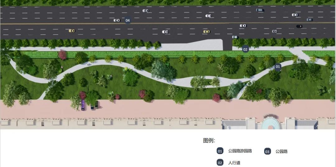 공원로 량측에 자연적으로 기복이 있는 지형풍격을 이어가며 록지 사이에 오솔길을 건설하여 삼림속에서 걷는 자연경관을 형성할 전망이다.