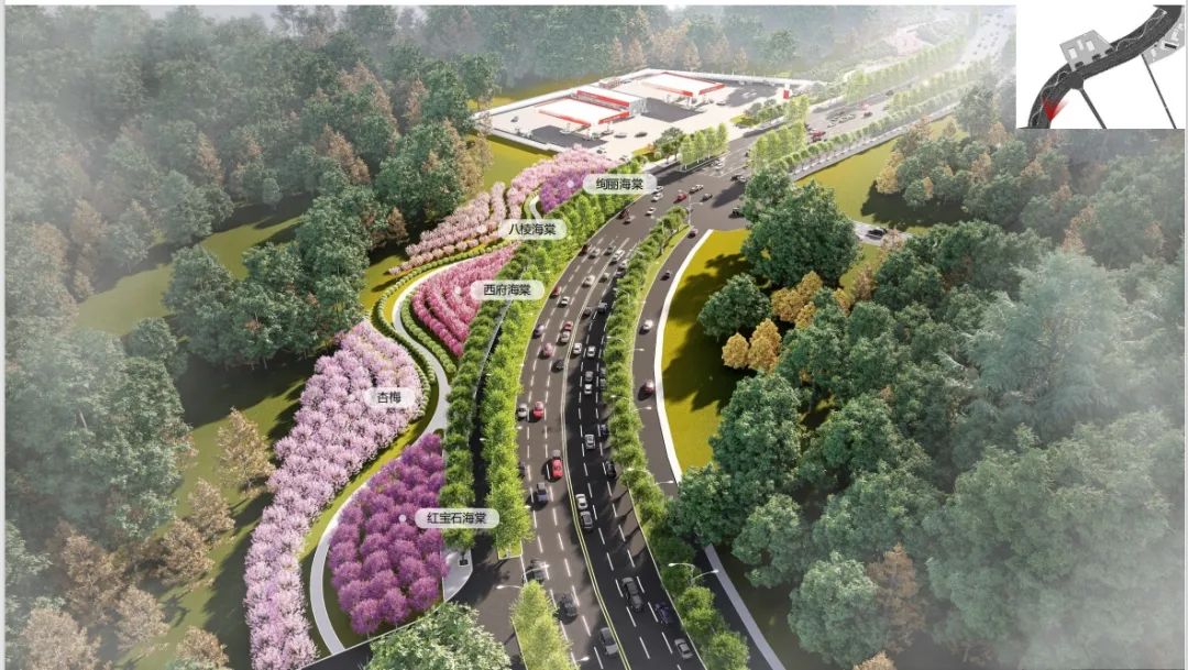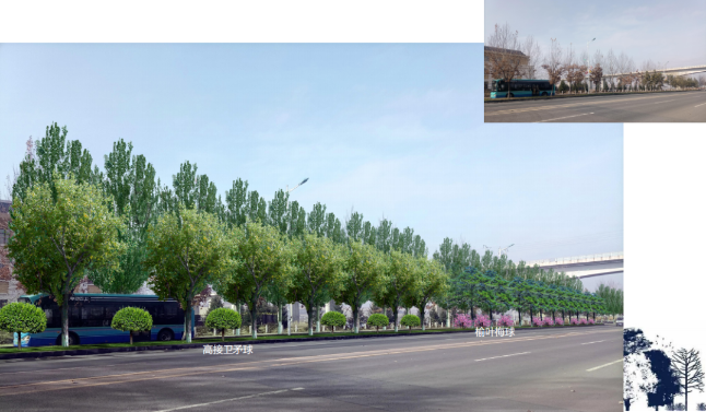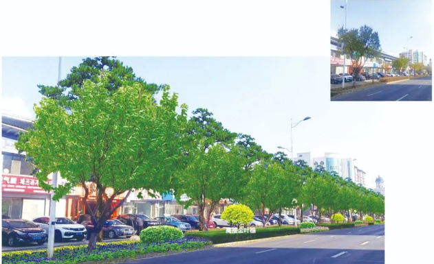 동해로. 주변의 건축을 충분히 리용하고 록화경관의 공간 분포, 색채 조화, 계절에 따른 변화에 중시를 돌리며 화단, 꽃 경관을 리용해 풍부한 색채미를 보여주며 계절에 따른 식물의 변화와 결부해 사계절의 아름다움을 보여주고 조명설계를 활용해 도로록화가 야간에도 관상성이 있도록 한다.