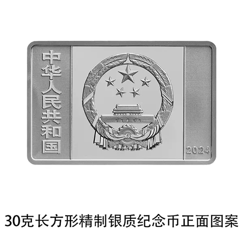 30g 장방형 은기념주화는 정제화체로 순금 30g, 규격 42mm×27.5mm, 액면가 10원, 색상 99.9%, 최대 발행량 20000매이다.