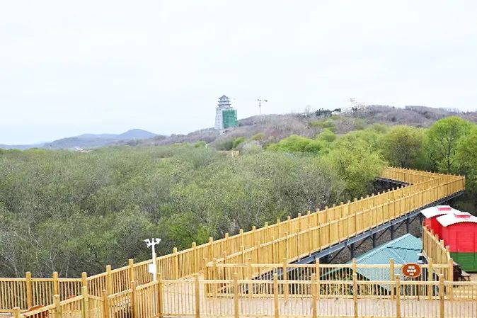 훈춘시방천풍경구에서 고리형 나무잔도를 새로 건설해 잔도 끝 꼭대기에서 내려다보면 '삼국을 한눈에 바라볼 수 있는 곳'이 전에 없던 새로운 시야를 선사한다.