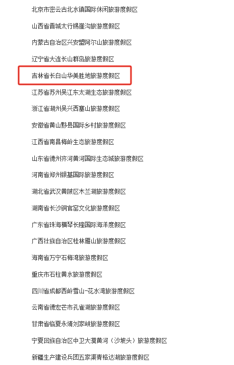 그중 길림성에서는 장백산화미명승지관광휴양지(长白山华美胜地旅游度假区)가 22곳 명단에 올랐다.