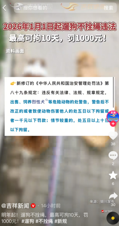 이번 개정에는 반려견 기르는 행위에 대해 특별히 '경계선'을 설정했는데 이후로 반려견 사육은 더 이상 개인의 사적인 일이 아닌 공공안전과 관련된 '법률문제'가 될 전망이다. 규정을 위반해 반려견을 기를 경우 경미하면 벌금, 심한 경우 구류에 처해진다.