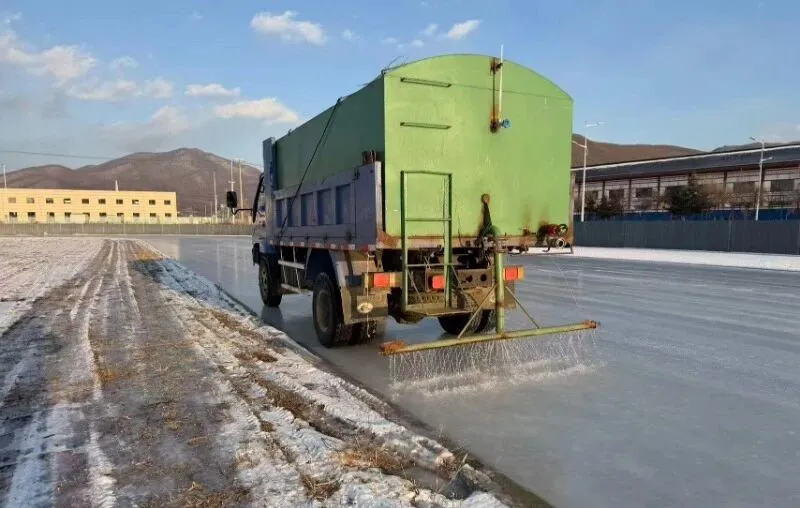 12월 10일, 현장을 찾았을 때 작업일군들이 살수차를 조종하며 한창 왕복작업을 진행하고 있었다. 방금 살수된 얼음 표면은 해빛아래 희고 매끈한 광택을 띠고 있었다. 현장 책임자는 "특히 깨끗한 산천수를 사용해 얼음판을 만들고 있는데 이 물은 '우유'처럼 부드럽고 매끄러운 빙판을 형성할 수 있다"고 설명했다.