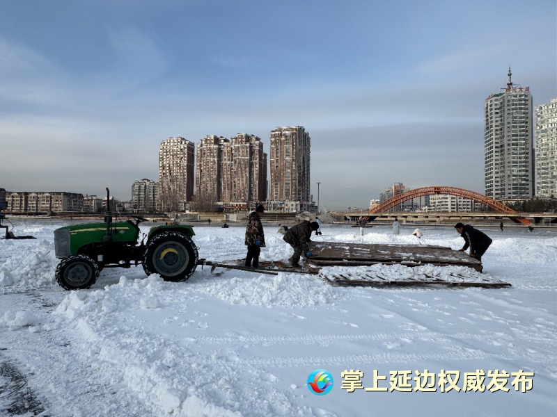 12월 15일, 연길시 부르하통하 연길대교 서쪽에서 작업일군들이 인공눈 만들기에 분망히 보내고 있다. 이는 2025-2026 새 눈시즌 연길빙설환락곡 준비작업이 본격적으로 시작였음을 의미한다.