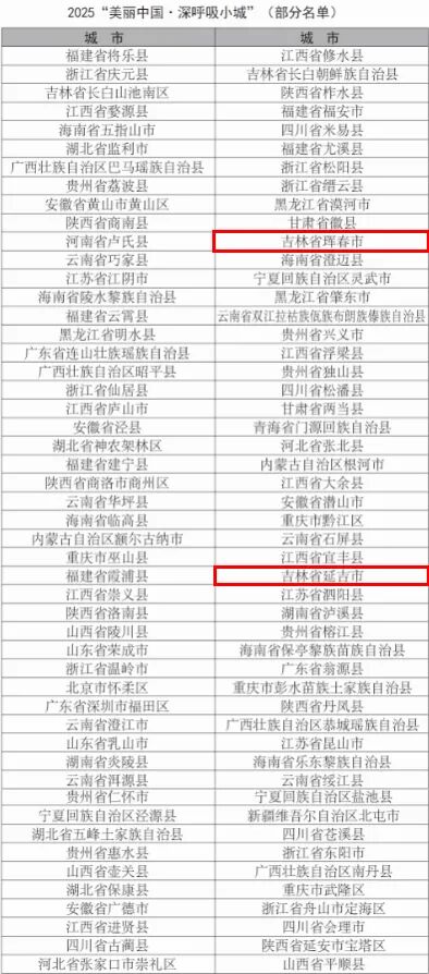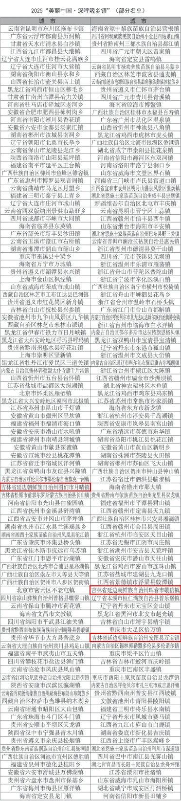 12월 15일, 광명일보는 북경전역관광계획설계원이 발표한 <심호흡: 느낄 수 있는 록색발전——2025년도 '아름다운 중국·심호흡 소도시/향진' 발전 보고>를 게재했는데 그중 연변 여러곳이 명단에 이름을 올렸다.