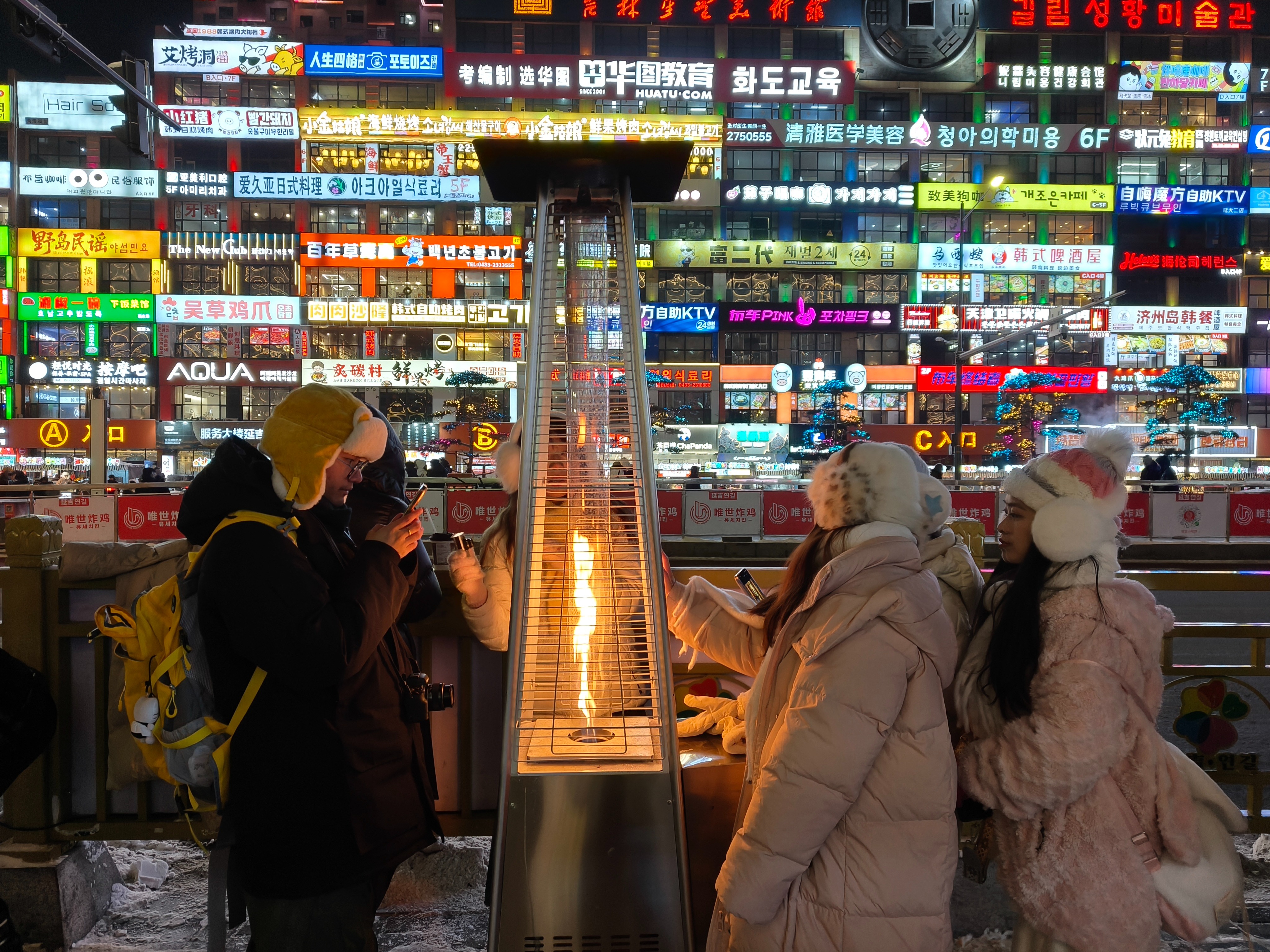 빙설관광의 인기목적지로서 연길시는 2025년 12월 인터넷인기간판벽 근처에 손난로 4개를 설치했다.(연변대학 정문 서쪽 2개, 연변대학 BRT 정류장 대기구역 2개). 최근에는 공원로 근처에 손난로 4개를 추가 설치했다(연변대학 정문 동쪽 2개, 서쪽 대형 눈사람 조각상 근처 2개). 현재 손난로는 설치 및 조정을 마치고 사용에 투입되였다.