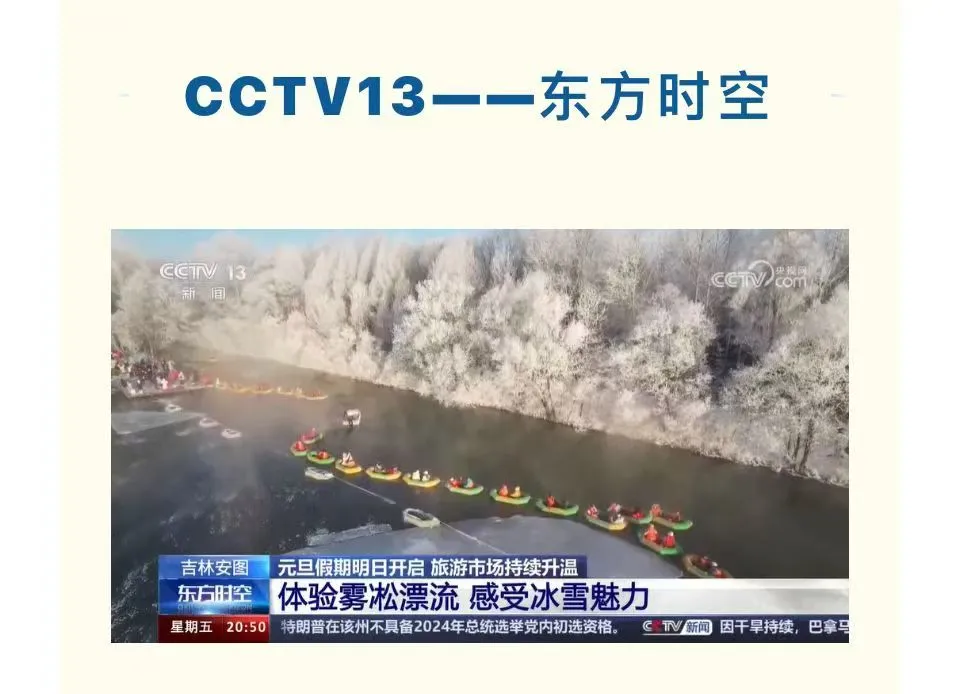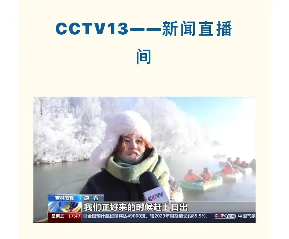 해살이 아침안개를 뚫고 비추고 량쪽 강기슭의 나무가지에 상고대가 하얗게 피였다. 그 사이로 고무배가 마치 게임속의 '뱀'처럼 지나가는데 마치 '선경' 속에 들어간 듯 하다. 이것이 바로 CCTV 렌즈가 반복해서 기록한 장면으로 필터의 가미없이 오직 자연의 아름다운 경치를 기록한 것이다.