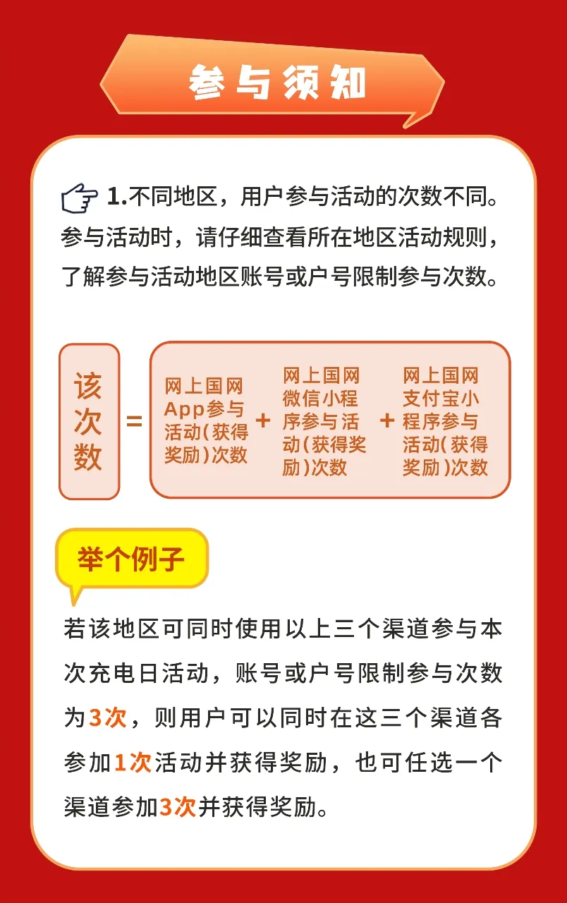 활동기간 '온라인 국가전력망'앱 로그인 계정 하나당 한번만 참여 가능하며 위챗 응용프로그램이나 계정에서 이미 참여했으면 앱에서 중복해 참여할 수 없다.