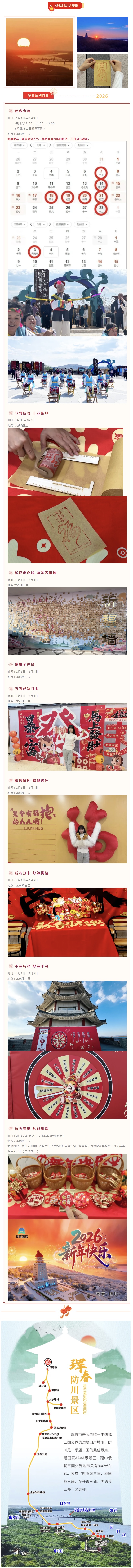 음력설기간, 방천풍경구는 정상적으로 영업합니다! 음력 섣달 그믐부터 정월 초닷새(2월 16일-2월 21일)까지 영업시간을 8: 30-15: 30으로 조정합니다. 정월 초엿새부터 정상 영업시간을 회복합니다.