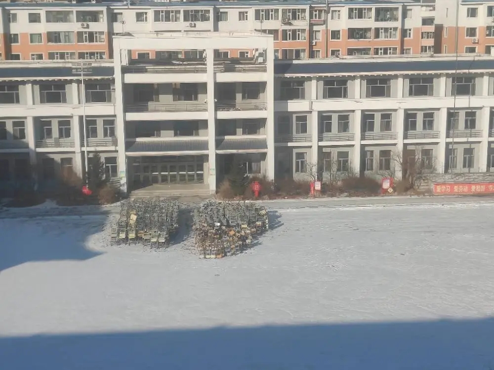 "연길시제6중학교 옛 교정에서 의자가 이틀 동안 방치된 것을 보았습니다. 이곳은 앞으로 어떤 용도로 사용될 예정인가요? 여전히 학교로 사용되나요? 지금은 겨울이고 의자들이 계속 방치되면 망가질 수 있어 안타깝습니다. "
