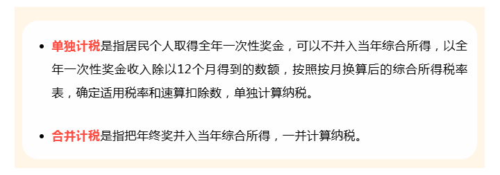 직장인의 경우 일반적으로 로임소득이 년말 상금 소득보다 높기 때문에 단독으로 세금을 부과할 수 있다. 이렇게 하면 종합소득에 포함되는 것보다 낮은 세률구간을 적용할 수 있다. 물론 두가지 방식을 각기 한번씩 선택할 수 있으며 환급이 많거나 보충납부액이 적은 방식을 선택할 수 있다.