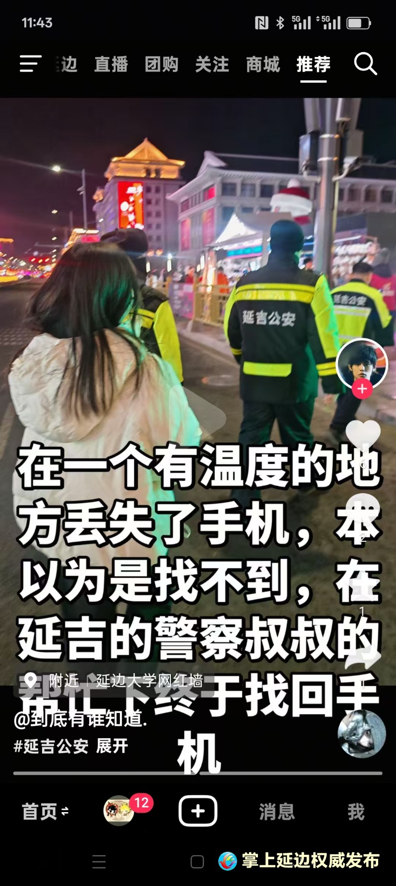 "잃어버린 휴대폰을 찾기 힘들거라 생각했는데 연길 민경의 도움으로 되찾았습니다." 이는 관광객이 인터넷에 올린 따뜻한 영상이다.
