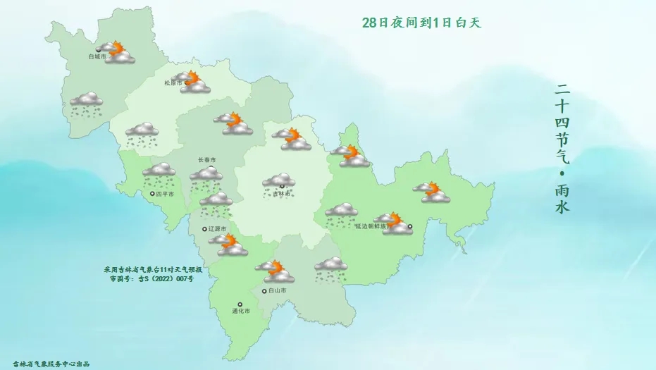 오늘 오후부터 밤 사이 전 성은 구름이 많고 가끔 흐리며 백성, 송원 대부분 지역, 료원 동부, 길림 대부분 지역, 통화 대부분 지역, 백산, 연변, 장백산보호개발구에 적은 눈이 내리고 그중 연변 북부 일부 지역에 중설이 내릴 것으로 예상된다.
