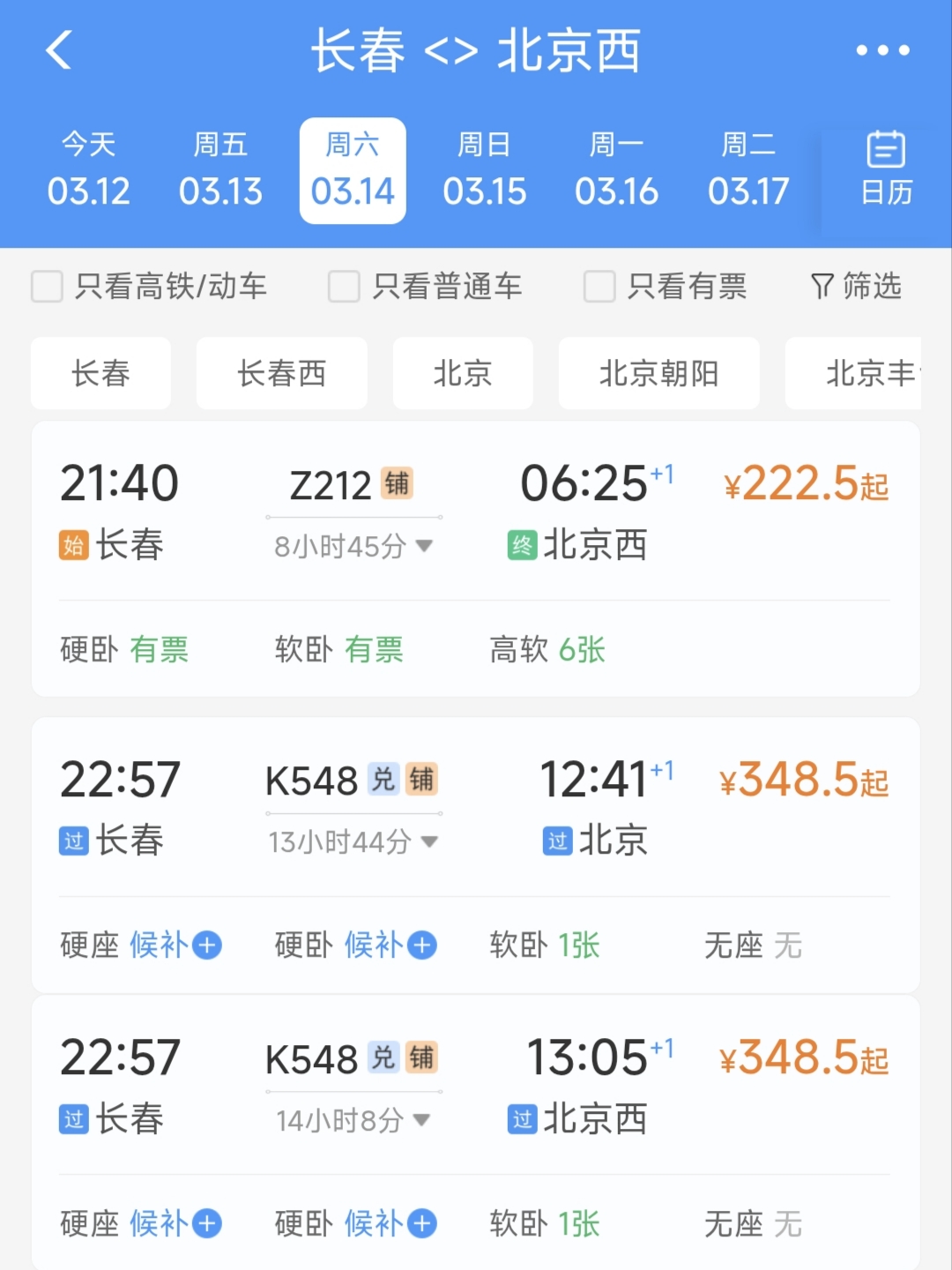 3월 12일, 한 네티즌은 철도 12306의 장춘-북경서 Z62편 렬차가 3월 14일부터 티켓판매가 중단되고 북경-장춘의 Z61편 렬차도 3월 15일부터 티켓판매가 잠시 중단된다는 글을 남겼다.