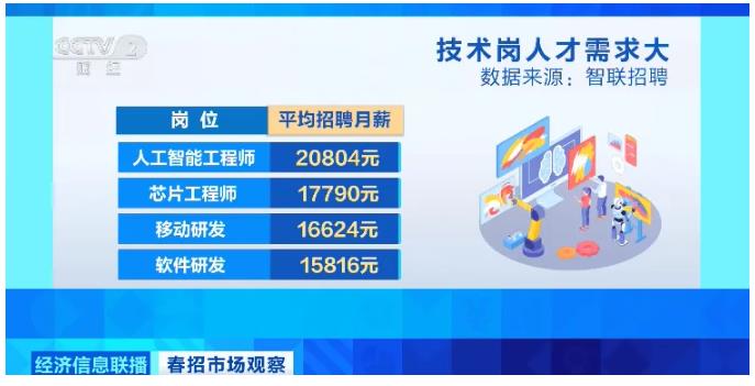최신 데이터에 따르면 현재 인공지능공정사의 평균 월급은 20,804원, 칩공정사, 모바일연구개발인원, 소프트웨어연구개발인원이 그 뒤를 이어 각각 17,790원, 16,624원, 15,816원의 로임을 받고 있다고 한다.
