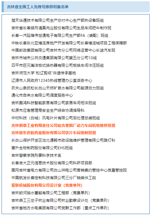 공시시간은 3월 20일부터 3월 26일까지이다. 공시기간 부동한 의견이 있는 경우 3월 26일 17시 전까지 전화, 편지 등 방식으로 길림성총공회에 반영할 수 있으며 편지는 도착한 날을 기준으로 한다. 문제를 반영할 때 실사구시하고 진실한 이름을 서명하며 련락방식을 고지해야 한다.