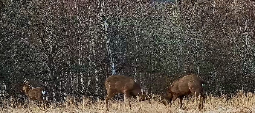 4월 12일 해가 떠오를 무렵, 훈춘시 양포향에서 야생꽃사슴떼가 봄기운을 따라 숲속에서 한가로이 거니는 모습이 포착됐다. 암컷들은 고개를 숙여 풀을 뜯으며 여유를 즐겼고 몇몇 수컷들은 뿔을 맞대며 장난치듯 노닐었다.