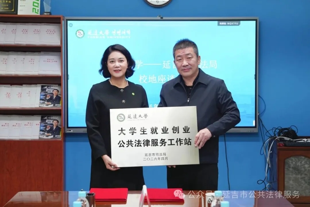 4월 14일, 연길시사법국과 연변대학 학생모집취업처는 공동으로 '대학생 취업창업 공공법률봉사사업소' 현판식을 개최했다. 이는 연길시가 대학생을 대상으로 하는 공공법률봉사가 '교정 진입' 단계로부터 '교정 상주', '상시화', '전문화' 단계로 전면 업그레이드되였음을 의미한다. 이는 또한 우리 주 최초의 대학생 취업창업 공공법률봉사사업소이다.