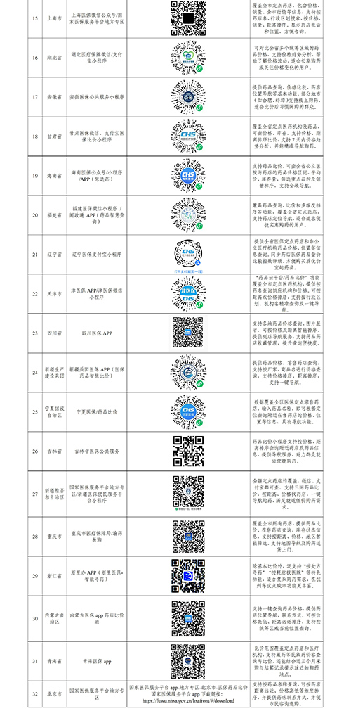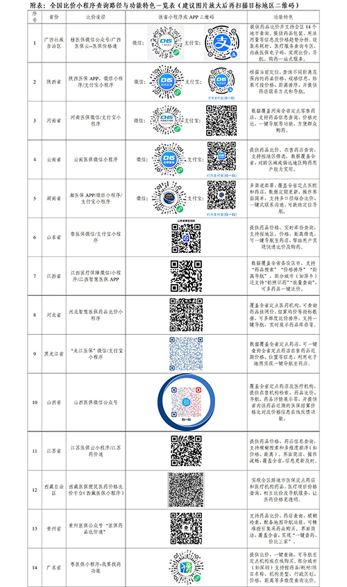 국가의료보장국은 전국 31개 성(자치구, 직할시) 및 신강생산건설병퇀과 련합하여 '가격비교' 미니앱을 출범했다. 주민들이 미니앱을 통해 더 많은 약국을 찾아 가격을 비교함으로써 헛걸음을 줄이고 헛돈을 쓰지 말 것을 권장한다.