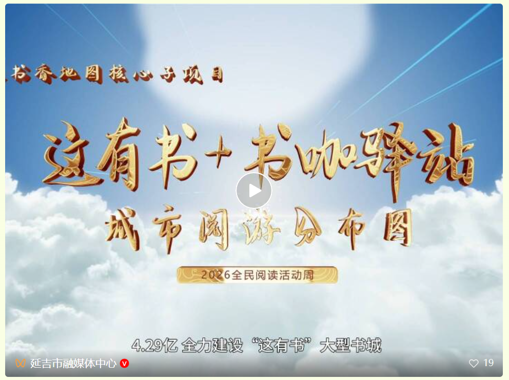 4월 19일, 연변주 및 연길시 2026 전민독서활동주간 가동식이 연길에서 거행되였다. 활동현장에서 '책 있는 곳'+'북카페쉼터' 도시열람지도를 정식으로 발표했는데 이는 연길시 전민독서사업이 정식으로 '활동전개'에서 '시스템구축', '브랜드육성'으로 심층 전환되였음을 표징하며 '책향기연길' 도시브랜드에 새로운 활력을 불어넣었다.