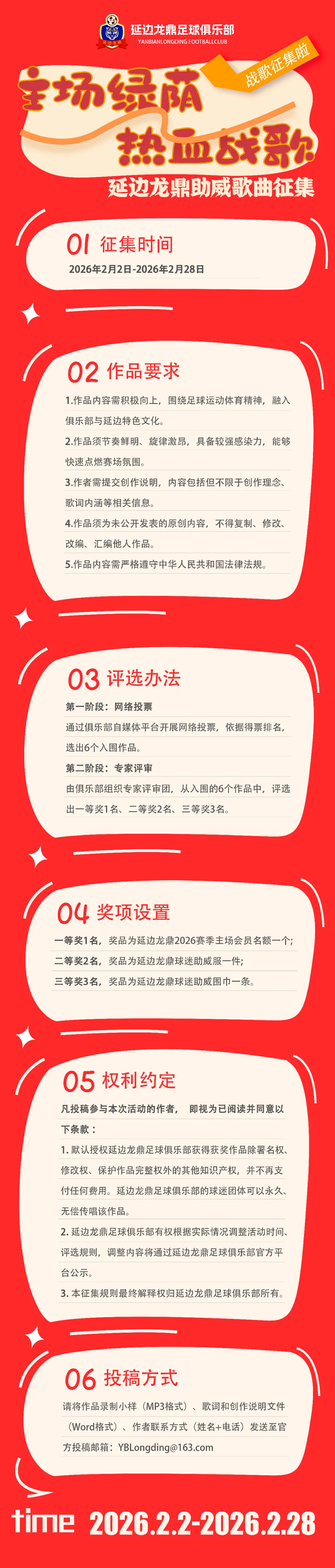 1. 작품내용은 적극적이고 진취적이며 축구운동체육정신을 중심으로 구락부와 연변특색문화를 조화롭게 반영해야 한다