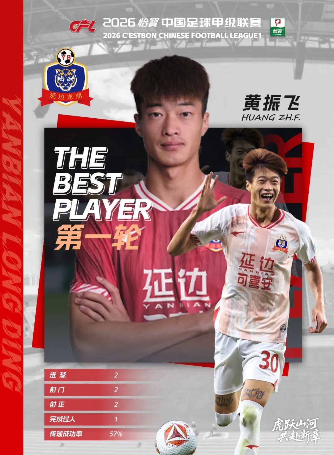황진비가 2026 중국축구 갑급리그 제1라운드 최우수 선수로 당선됐다. 제1라운드 매주객가와의 원정경기에서 황진비는 19분경과 21분경 두꼴을 뽑으며 승리에 기여를 했다.