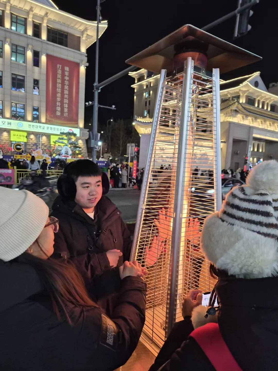 "너무 따뜻해~", 연길인터넷인기간판벽 주변 실외 손난로 설치