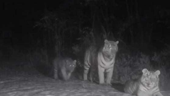 훈춘서 '어미호랑이+4마리 새끼' 희귀장면 포착
