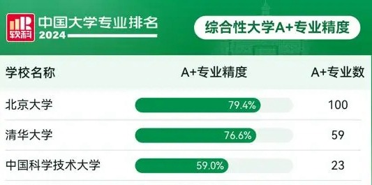 6월 13일, 고등교육평가기구 랭킹(软科)은 ‘2024 랭킹 중국대학 전공순위’를 발표했다. 결과에 의하면 북경대학이 100개 선두전공(A+)수로 1위를 차지했고 청화대학이 59개 A+ 전공수로 전국 2위를 차지했다. 북경 ...