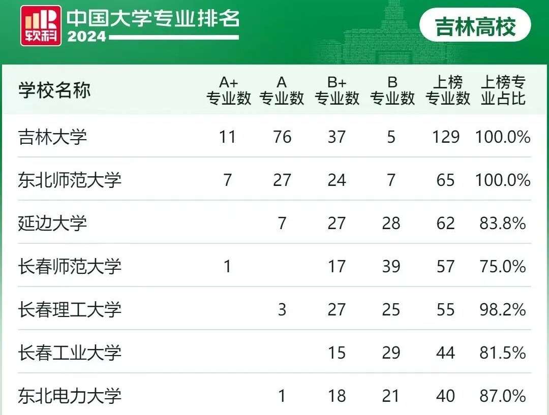 6월 13일, 고등교육전문평가기구인 랭킹(软科)에서는 '2024 랭킹 중국 대학 전공 순위'를 정식 발표했다. 북경대학은 100개 A+ 전공으로 크게 앞섰다. 순위에서 길림성은 도합 33개 대학의 830개 전공이 이름을 올렸...