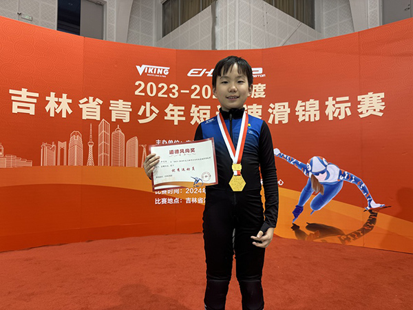 연길 4학년 학생 신애륜, 길림성 청소년 쇼트트랙서 우승