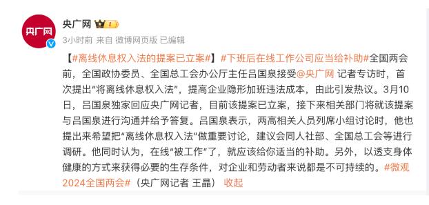 ‘오프라인휴식권 립법’ 제안, 이미 립안! 정협위원 응답→