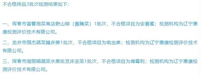 전 주 식품 추출검사 공시... 3차수 샘플 불합격음력설을 앞두고 주시장감독관리국은 식품안전감독 추출검사정보를 공시했다. 이번에 도합 1000차수의 식품에 대해 추출검사를 했는데 그중 997차수가 합격되였고 3차수의 샘플이 ...