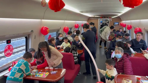 2024년 음력설운수의 막이 열렸다. 1월 29일 오후, 하문에서 상해로 가는 G1654 고속렬차에서 한무리의 꼬마승객들이 승무원의 인솔하에 서로 웃고 떠들며 재미나는 미니게임을 시작했다.이 고속렬차의 9호 식당칸은 차칸의 ...