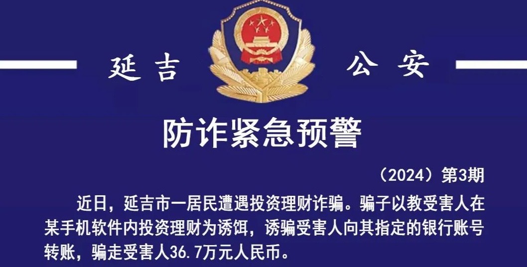[주의] 재테크 투자 사기 다양해져... 연길 시민 36만 사기당해!