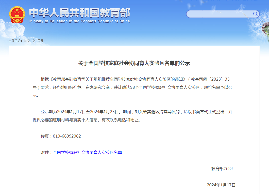 교육부 최신 공시! 길림성 3곳 입선