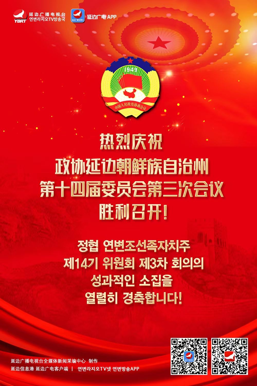 정협 연변조선족자치주 제14기 위원회 제3차 회의의 성과적인 소집을 열렬히 경축합니다!