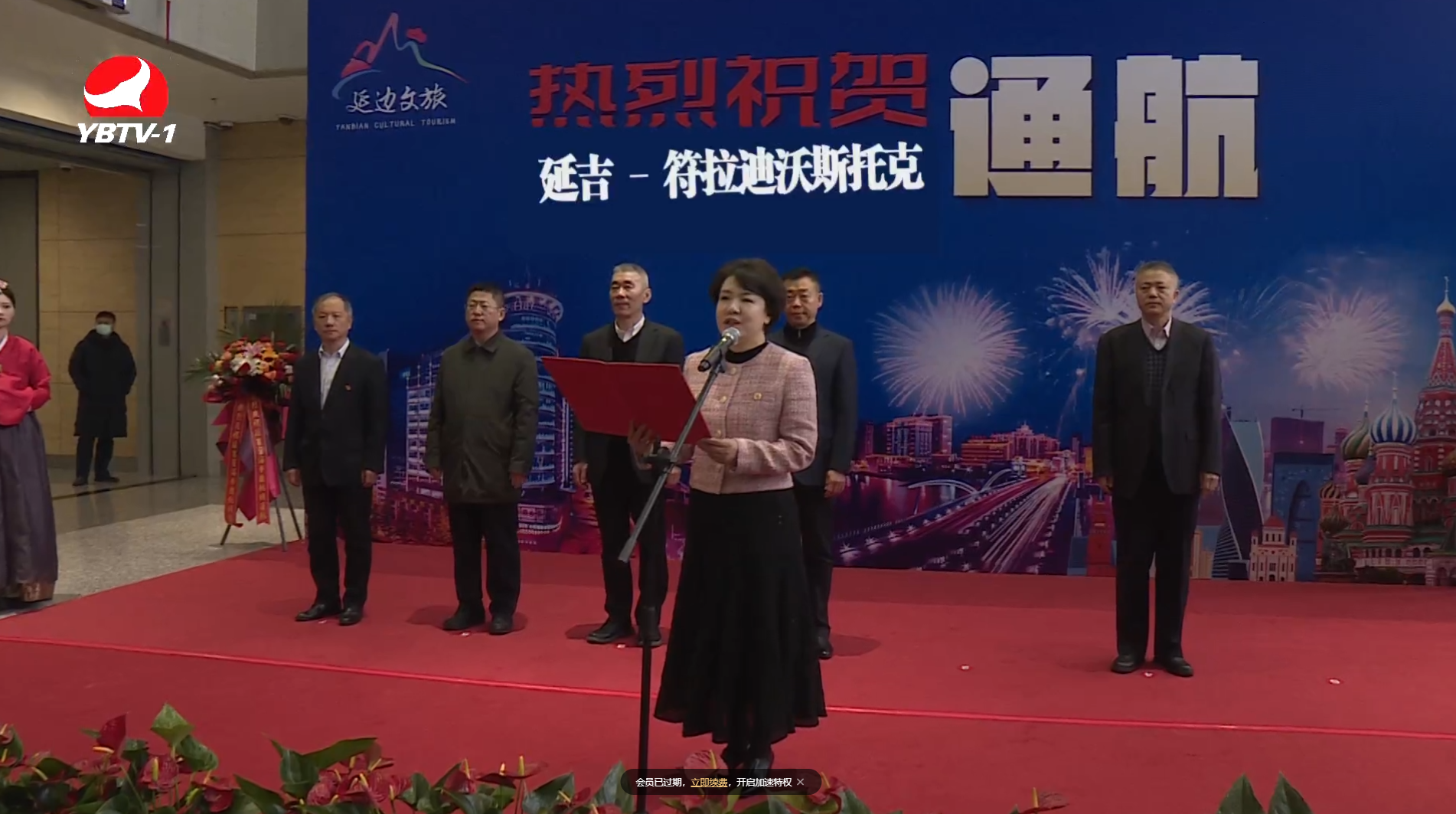 연길조양천국제공항에서 펼쳐진 의식에서 부주장 윤조휘와 성문화및관광청, 동북민항관리국, 주문화라...