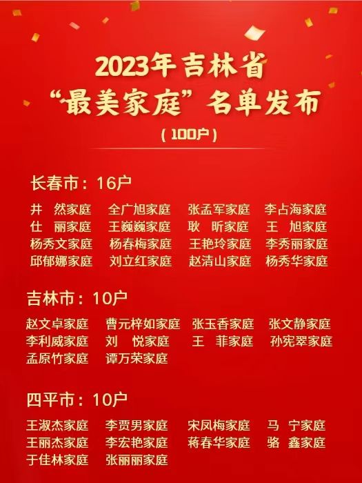 2023년 길림성 '가장 아름다운 가정' 명단 발표...연변은?