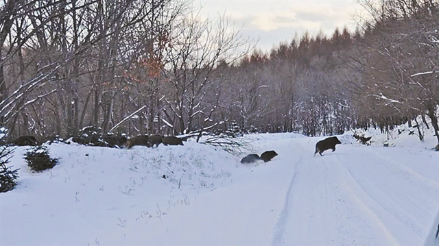흑룡강 동녕: 메돼지 24마리 줄지어 길 건너