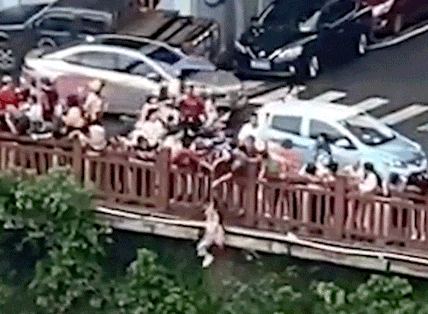 위급한 시각, 그는 8메터 높이의 뚝에서 뛰여내렸다!