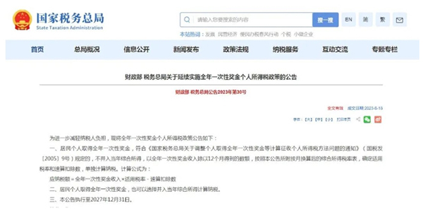 최근 재정부, 세무총국은 개인소득세와 관련된 일련의 공고를 발표했다.주민 개인이 취득한 전년 1회성 보너스가 해당 규정에 부합될 경우 그해 종합소득에 포함시키지 않고 전년 1회성 보너스 소득을 12개월로 나누어 얻은 금액으로...