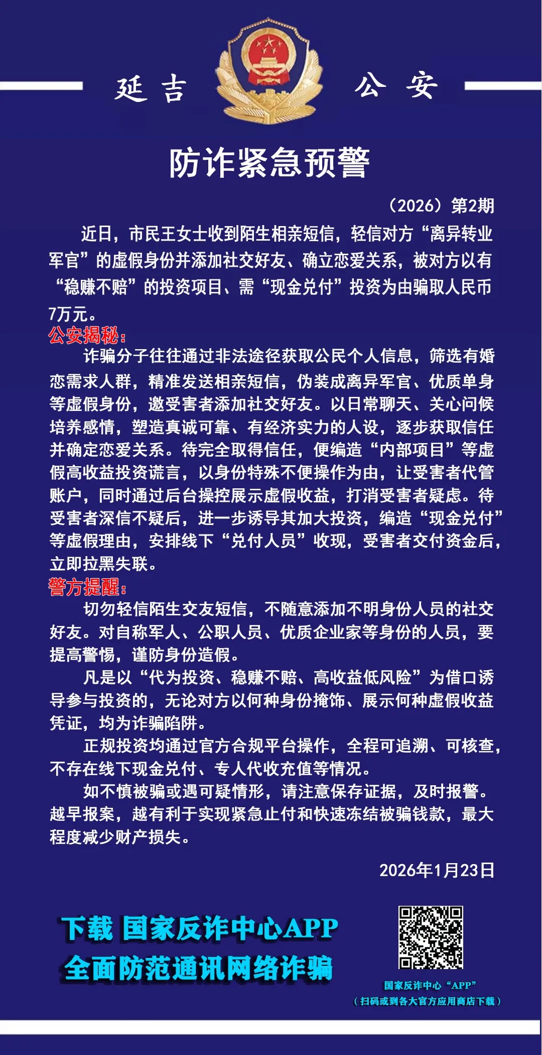 [연길공안 주의보] '소개팅+투자' 이중 사기극으로 7만여원 사기
