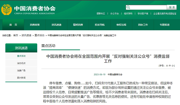 주차료금 납부, 음식주문, 쇼핑 등 코드스캔결제가 수동서비스를 대체하는 것은 일반적인 관행으로 되였지만 일부 장소의 공식계정을 통한 결제, 개인정보승인 강요, 일상적 광고 추천 등으로 인해 많은 소비자들이 어려움을 겪고 있다...